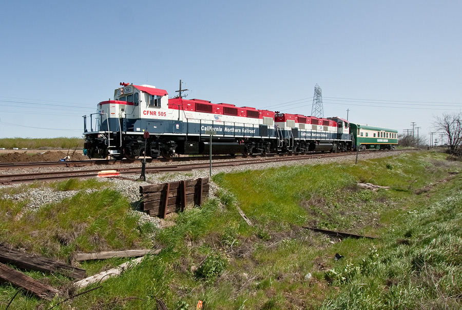 | California Northern celebrated the its new genset locomotives with a one-car passenger special running between Davis and Corning on March 18. We first me the special a few miles north of Woodland and followed it all the way to Willows. We then turned back and caught up to the southbound freight working its way back to Woodland for the night. Here are the photos of the northbound chase. | ||||||||||||||||||||||||||||||||||||||||||||||||||||||||||||||||||||||||||||||||||||||||||||||||||||||||||||||||||||||||||||||||||||