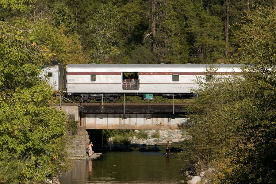 | On Sunday, an Alameda, CA based software company chartered an Amtrak special to Mount Shasta for its employees. The vintage passenger cars were pulled by a single GE P42DC (AMTK 67) as train 976. The passenger car list was (front to back): Pony Express, Silver Lariat, Plaza Santa Fe, Silver Rapids and the Silver Solarium. Our chase begins at Castella Creek and continues to Dunsmuir, Mott and finally Mount Shasta. Enjoy the photos! | ||||||||||||||||||||||||||||||||||||||||||||||||||||||||||||||||||||||||||||||||||||||||||||||||||||