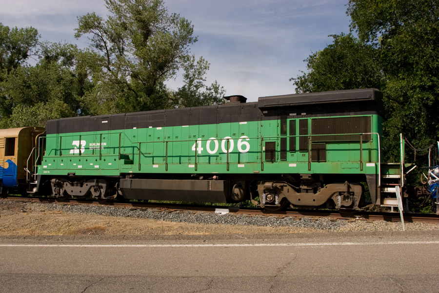 Former Burlington Northern cabless unit pressed into service on the Sacramento River train |